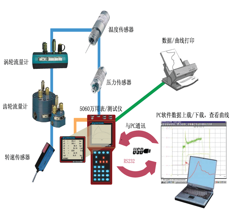 | ◆ 液壓萬用表屏幕或通過PC聯(lián)機(jī)軟件可以顯示各類分析曲線,可以打印報(bào)表,是種完整的現(xiàn)場(chǎng)調(diào)試、采集設(shè)備。 | |