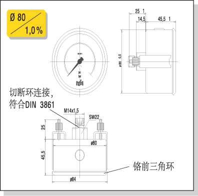 HydrotechnikØ 80機(jī)械式壓力表訂貨號: