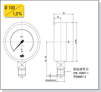 HydrotechnikØ 100機(jī)械式壓力表訂貨號: